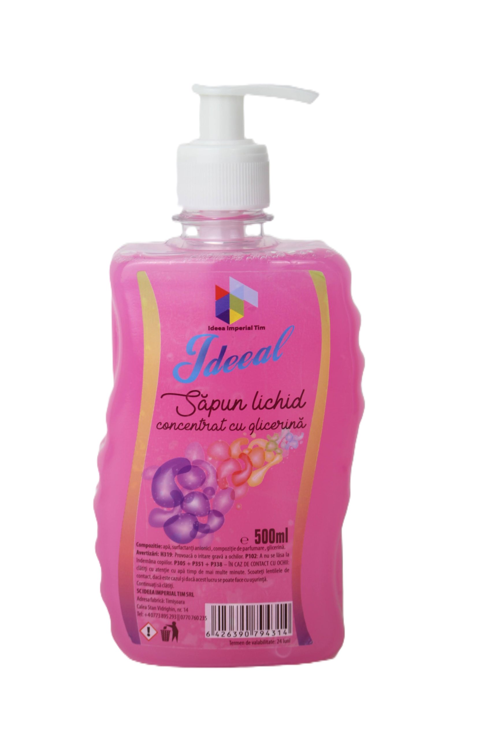 IDEEAL Sapun Lichid Economic Cu Glicerina – Flacon Pet – 0.5 L, Bubblegum